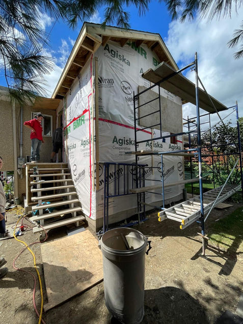 Agrandissement d'un jumelé à St-Hyacinthe. Ajout d'une pièce 4 saisons avec plafond cathédrale.